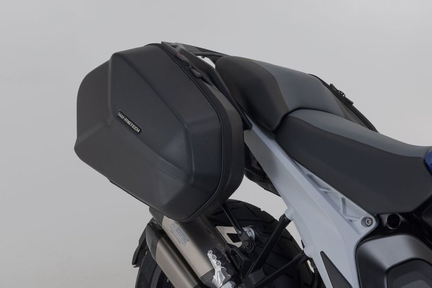 The side carriers are extremely durable and designed to fit closely along the vehicle. SW-MOTECH manufactures these side carriers in robust steel and then finish them off with a black powder coating. The patented QUICK-LOCK system allows the carrier to be attached and removed quickly - after a quarter turn at the attachment points, the carrier can be removed completely and only inconspicuous mounting tabs remain on the motorcycle.