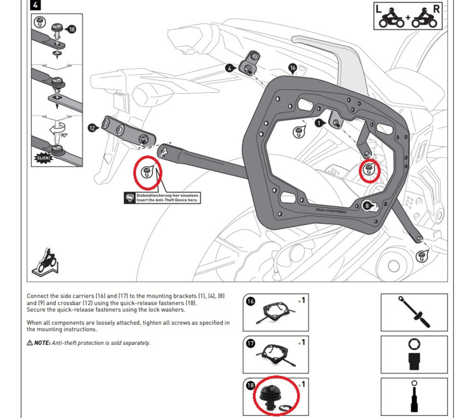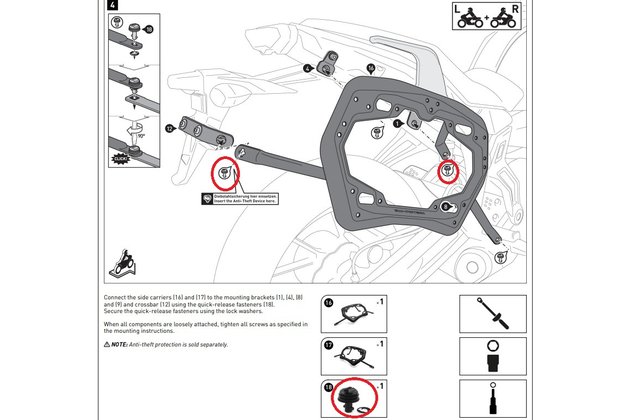 If a quick-release fastener happens to get lost, it can be easily replaced and ordered from us. Tip: The lock washer included in delivery should be mounted as well - it secures the quick-release fastener on the PRO side carrier when you remove it from the motorcycle. That way you won't need the next replacement quick-release fastener in the near future.