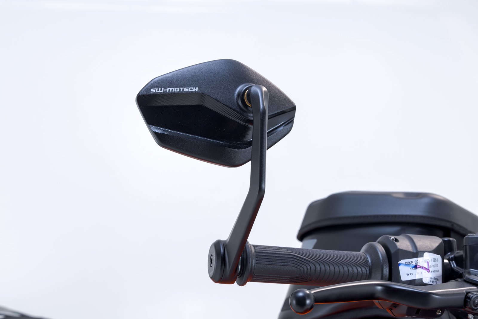 Make your motorcycle stand out with the handlebar end mirrors from SW-MOTECH. The mirrors are made from forged, milled and black anodized aluminum and feature engraved logo details. Thus, they add a robust yet elegant touch to your handlebars.
