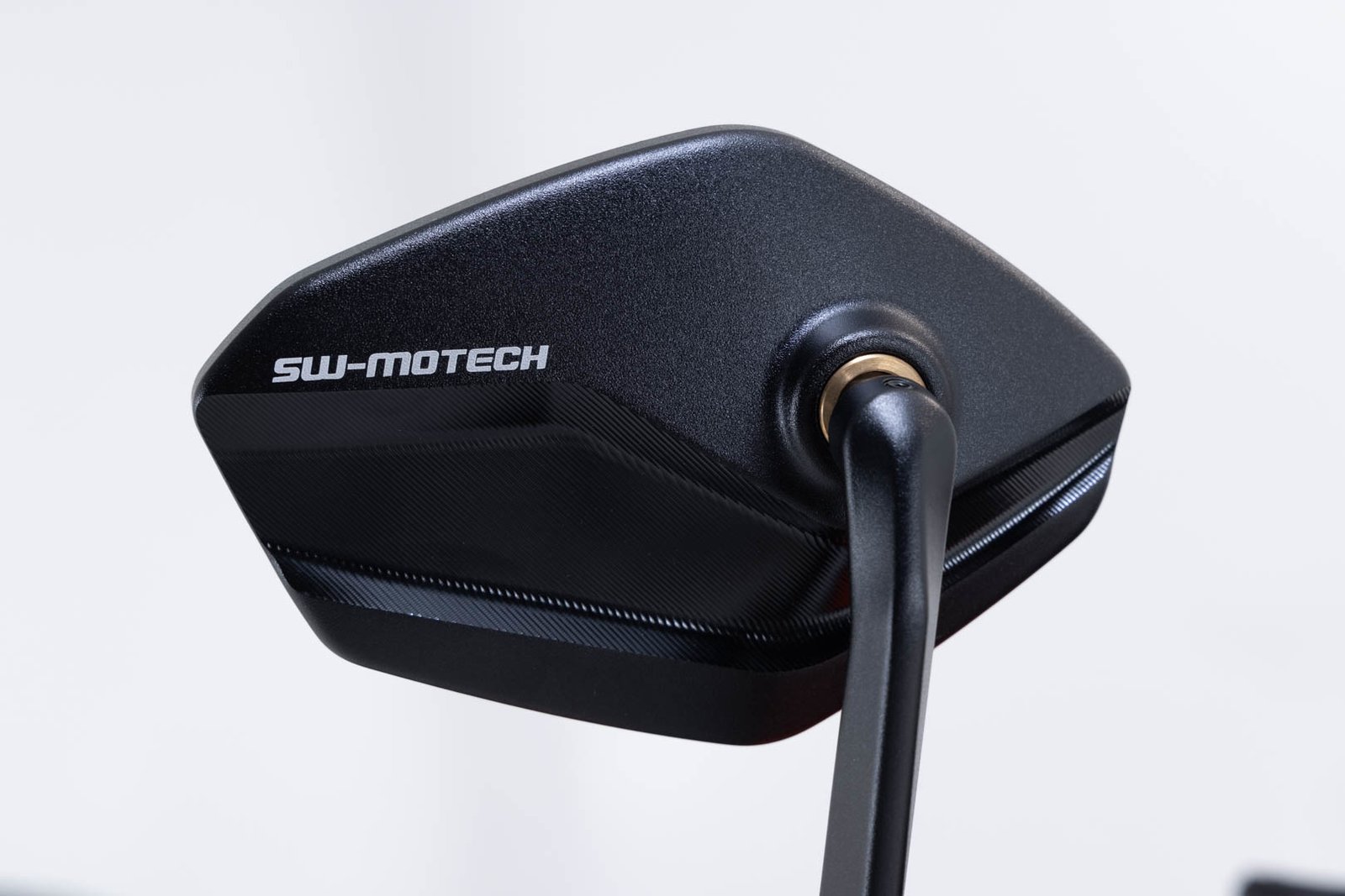 Make your KTM motorcycle stand out with the handlebar end mirrors from SW-MOTECH. The mirrors are made from forged, milled and black anodized aluminum and feature engraved logo details. Thus, they add a robust yet elegant touch to your handlebars.