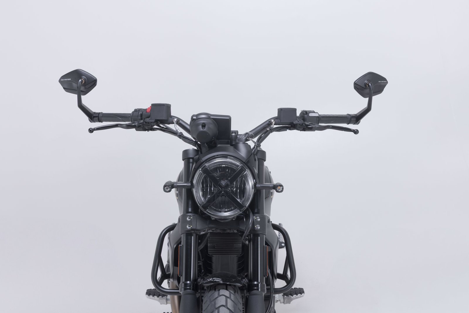 The ultimate in visibility: swap standard for premium and enjoy the attention your motorcycle will attract in the parking lot with these exclusive mirrors and always keep a safe eye on your passengers on the road.