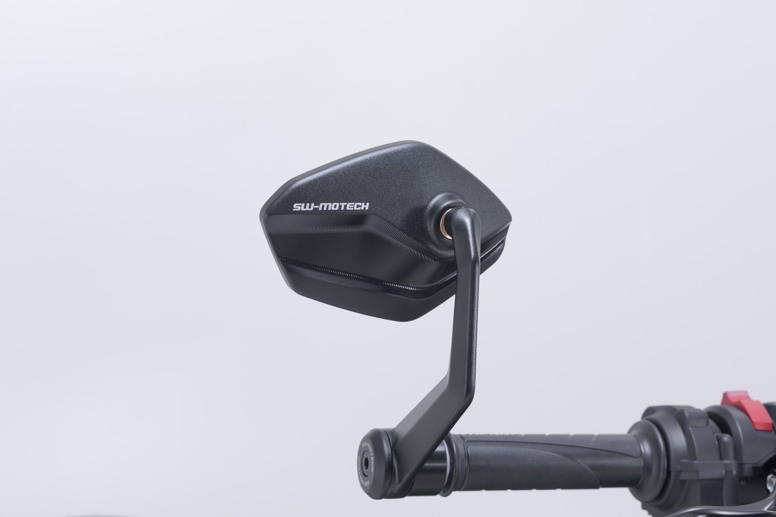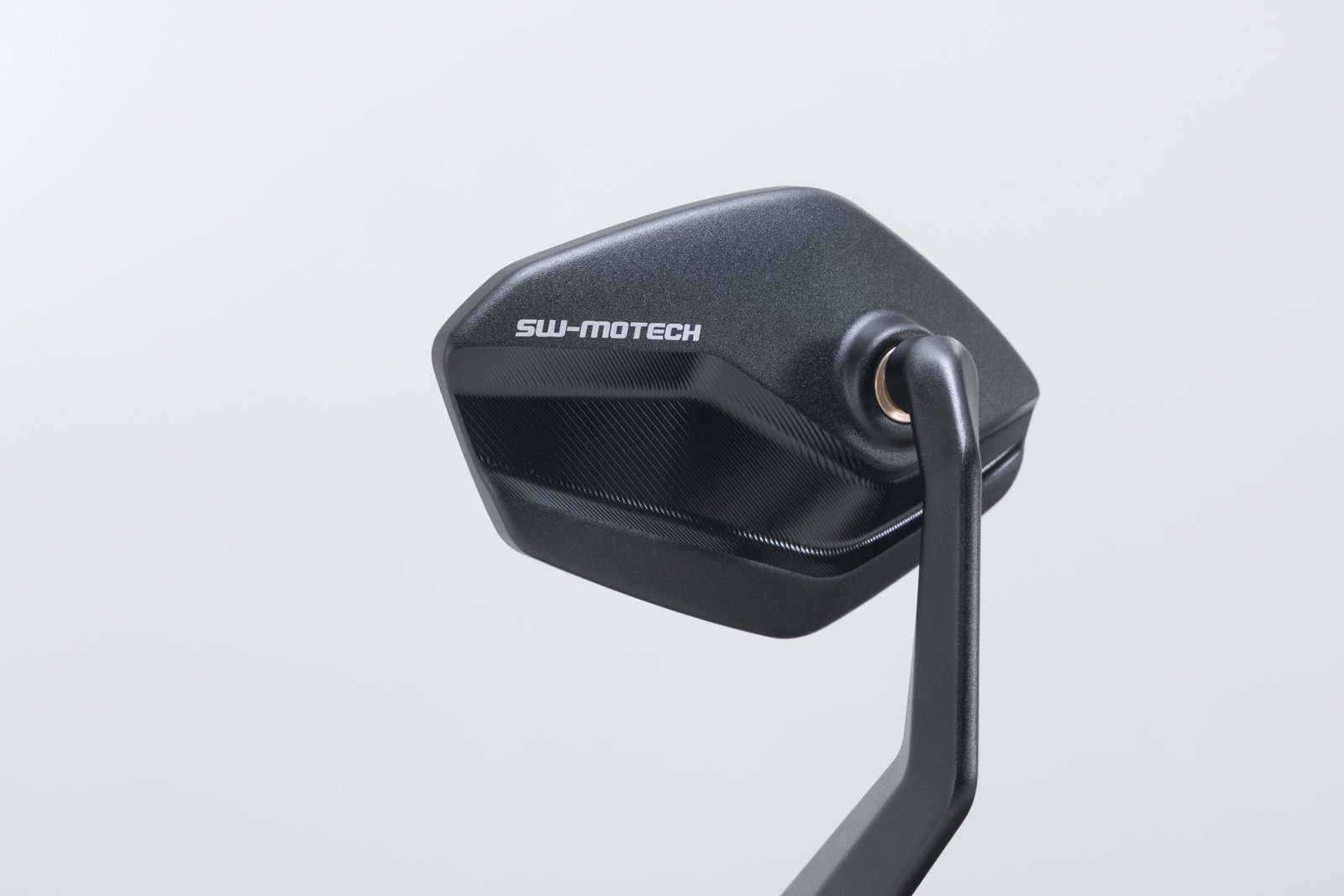 Make your Suzuki motorcycle stand out with the handlebar end mirrors from SW-MOTECH. The mirrors are made from forged, milled and black anodized aluminum and feature engraved logo details. Thus, they add a robust yet elegant touch to your handlebars.