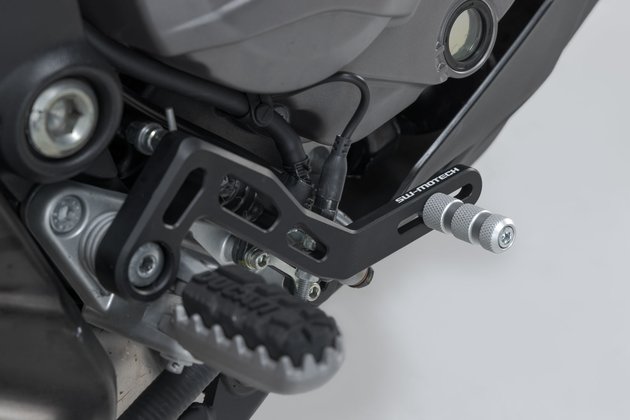 The adjustable brake pedal made of high-quality milled aluminum with HART-COAT® finish allows for optimized handling and control of the brake. The length of the SW-MOTECH brake pedal can be adjusted by 5 cm, so it suits every foot and every driving style. The tread pattern increases grip and provides improved stability for sporty driving and longer tours. With the Adventure tread (sold separately) you can improve brake pedal handling, especially during offroad driving while standing.
