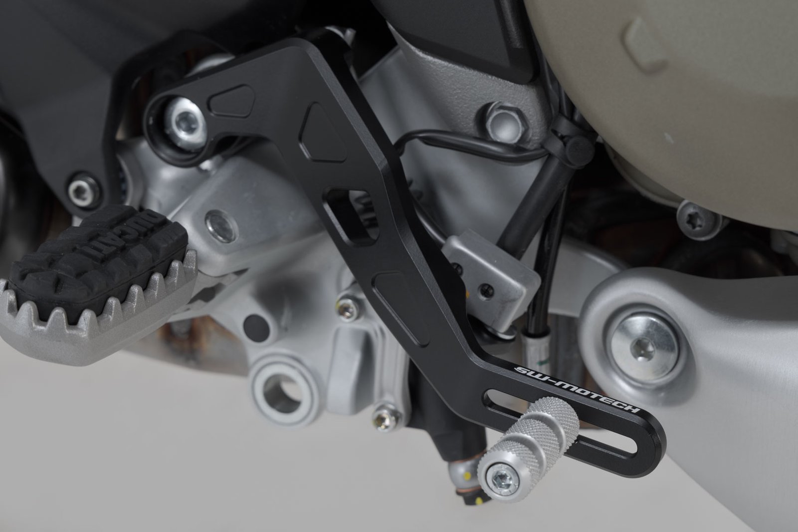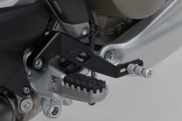 Nastavitelný brzdový pedál z vysoce kvalitního frézovaného hliníku s povrchovou úpravou HART-COAT® umožňuje optimalizovanou manipulaci a kontrolu nad brzdou. Délku brzdového pedálu SW-MOTECH lze nastavit o 5 cm, takže vyhovuje každé noze a každému stylu jízdy. Dezén běhounu zvyšuje přilnavost a poskytuje lepší stabilitu pro sportovní jízdu a delší výlety. S běhounem Adventure (prodává se samostatně) můžete zlepšit ovládání brzdového pedálu, zejména při jízdě v terénu ve stoje.