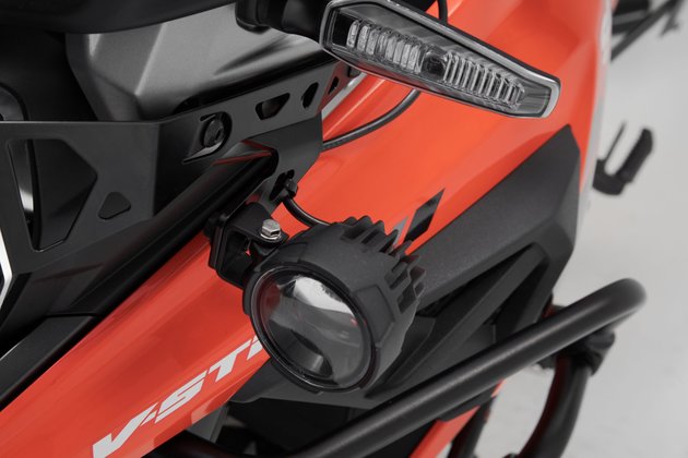 These bike-specific mounts provide optimal positioning of the EVO lights, because they are developed exclusively for each motorcycle model. The sturdy elements made of powder-coated steel are screwed on to existing attachment points. They guarantee secure hold for the EVO lights, even when riding off-road. Please refer to the mounting instructions to determine if headlamps can be mounted standing, hanging and/or sideways on your motorcycle model.