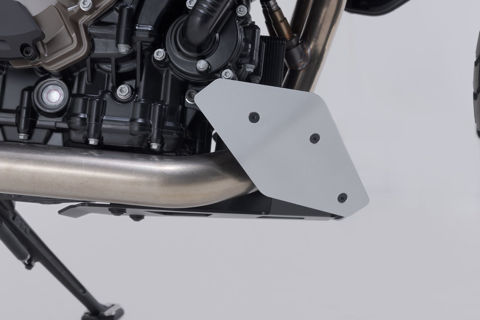 Přední spoiler SW-MOTECH, který je přizpůsoben designu motocyklu, nabízí spolehlivou ochranu proti odletujícím kamínkům a neúmyslnému kontaktu se zemí. Práškový lak na povrchu je extrémně odolný a trvale chrání před korozí. Extrémně robustní ochranu podvozku lze snadno připevnit k originálním upevňovacím bodům pomocí dodaných ocelových nástavců, a to vše bez vrtání nebo svařování.