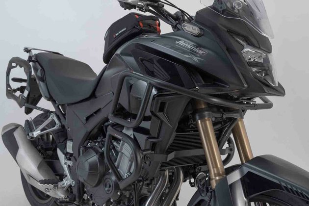 The elements developed exclusively for this motorcycle seamlessly fit the look of the vehicle and guarantee easy mounting. The upper crash bars mainly protect the fairing of the motorcycle and give the motorcycle an individual look.