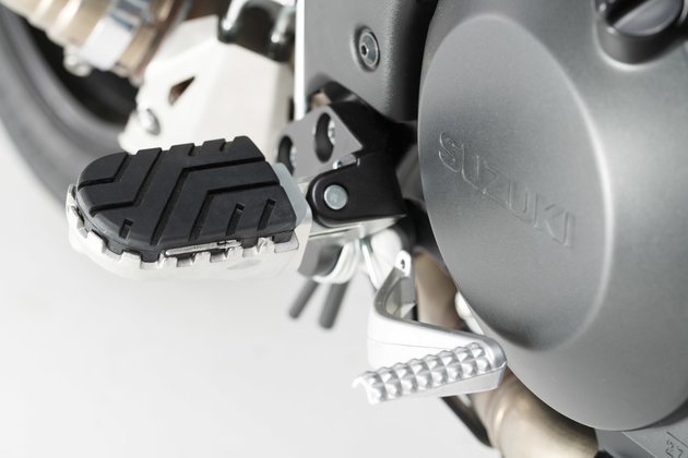 Our reasonably priced ION footrest kits allow the footrest to be mounted at its original height or lowered by 15 mm. Extremely durable and built to last, these stainless-steel footrests provide plenty of extra grip and are recommended for adventure, offroad and urban motorcycles. Hinges made from high-strength aluminum alloy ensure that the footrest can fold out of the way if the bike tips over. The removable rubber top surface reduces vibration, and the profile gives you a firm grip during offroad riding. To mount the bike-specific hinge adapter to the footrest sockets, the original attachments (springs, bolts, etc.) are used. Bike-specific Vehicle Type Approval for use on German roads is available.