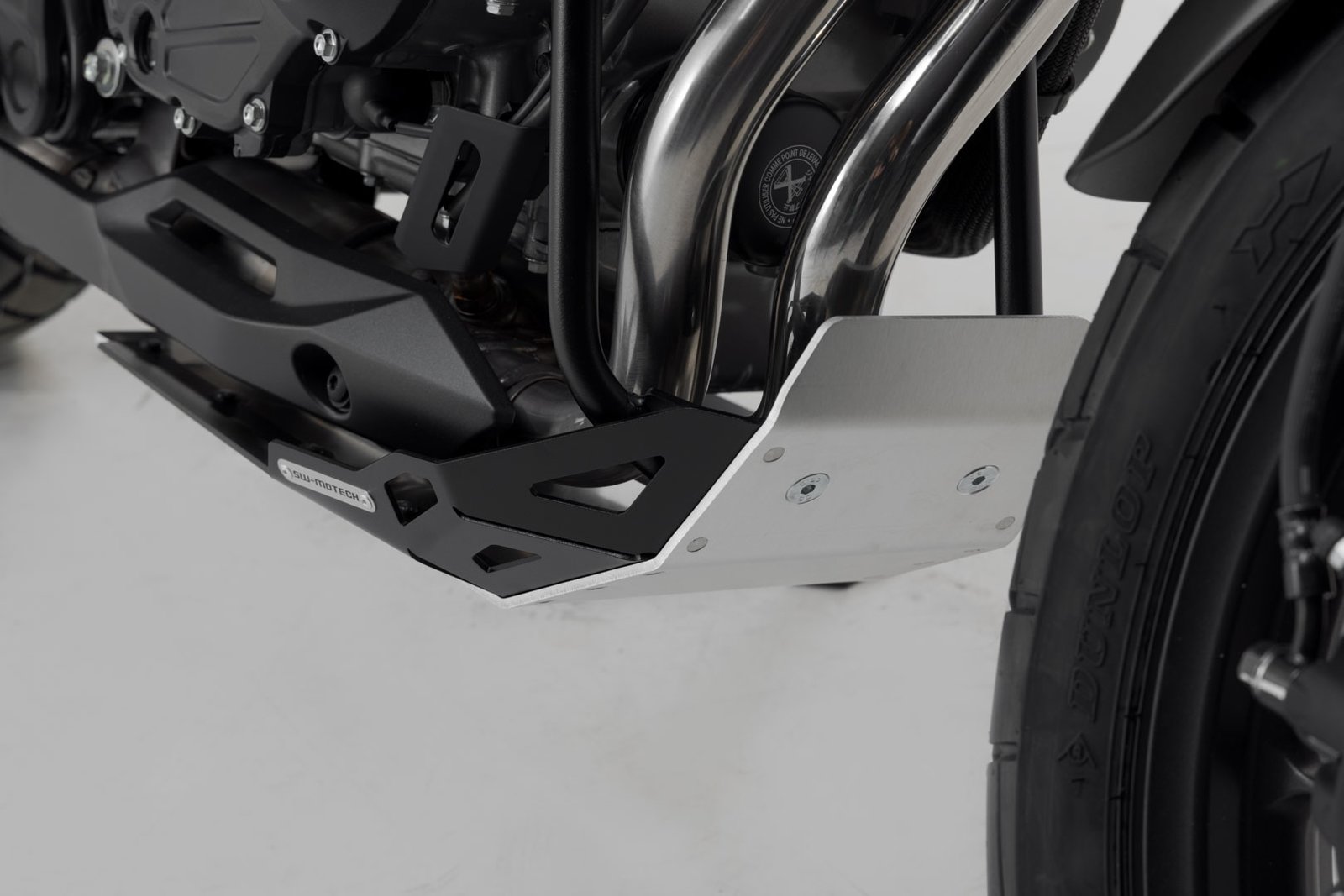Additional protection against rocks and contact with the ground for the engine: the high-quality, aluminium alloy engine guard shows what it's capable of off the street, but provides extra safety and an individualized look on the streets, too. State-of-the-art production gives these bike-specific protectors a secure fit. The installation on frame mounting points lends additional stability and allows for easy installation.