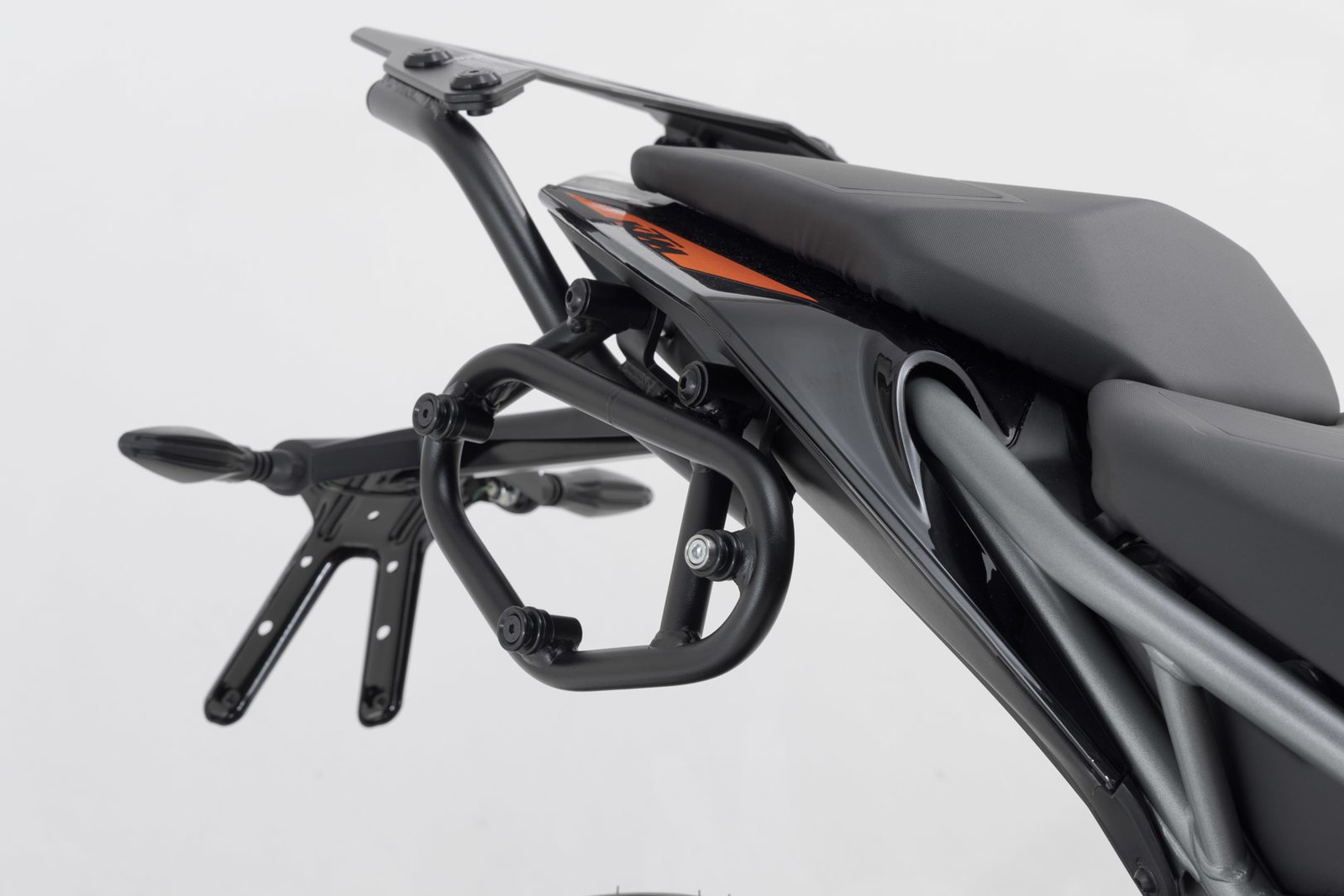 The side bag system consists of the matching SLC side carriers for the KTM 125 Duke as well as two LC2 Legend Gear side bags.