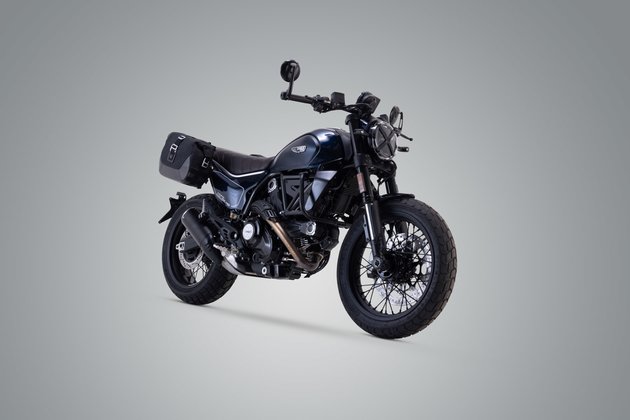 This side bag system consists of the matching SLC side carriers for the Ducati Scrambler Nightshift / Full Throttle as well as an LC1 and an LC2 Legend Gear side bag