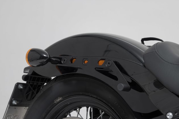 This LH side bag system has been specially developed by SW-MOTECH for the Harley-Davidson Softail StrBob (17-), Standard (20-). It consists of an LH1 on the right-hand side and an LH1 side pocket on the left-hand side, including a matching carrier for the motorcycle. Due to the uniform size of the bags, the duo ensures a symmetrical appearance on the bike and also enables additional individual exhaust configurations.