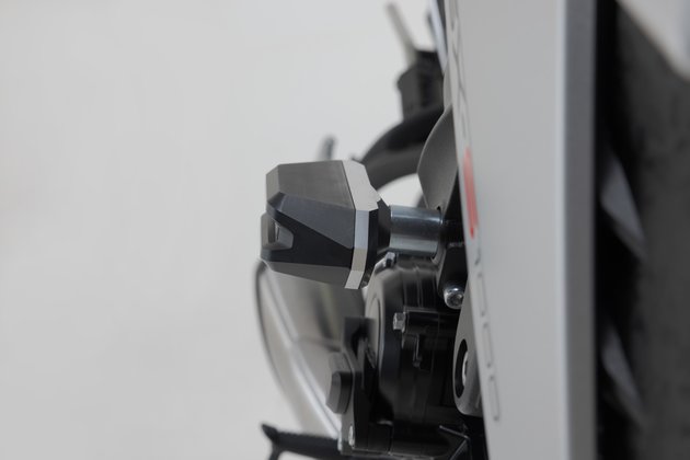 Frame crash pads provide additional protection in the event of a fall. The shape, surface and material of the pads provide excellent sliding properties to reduce damage to the motorcycle. The robust aluminium mounting bracket is easy to install, and the abrasion-resistant, CNC-milled slider pads are replaceable.