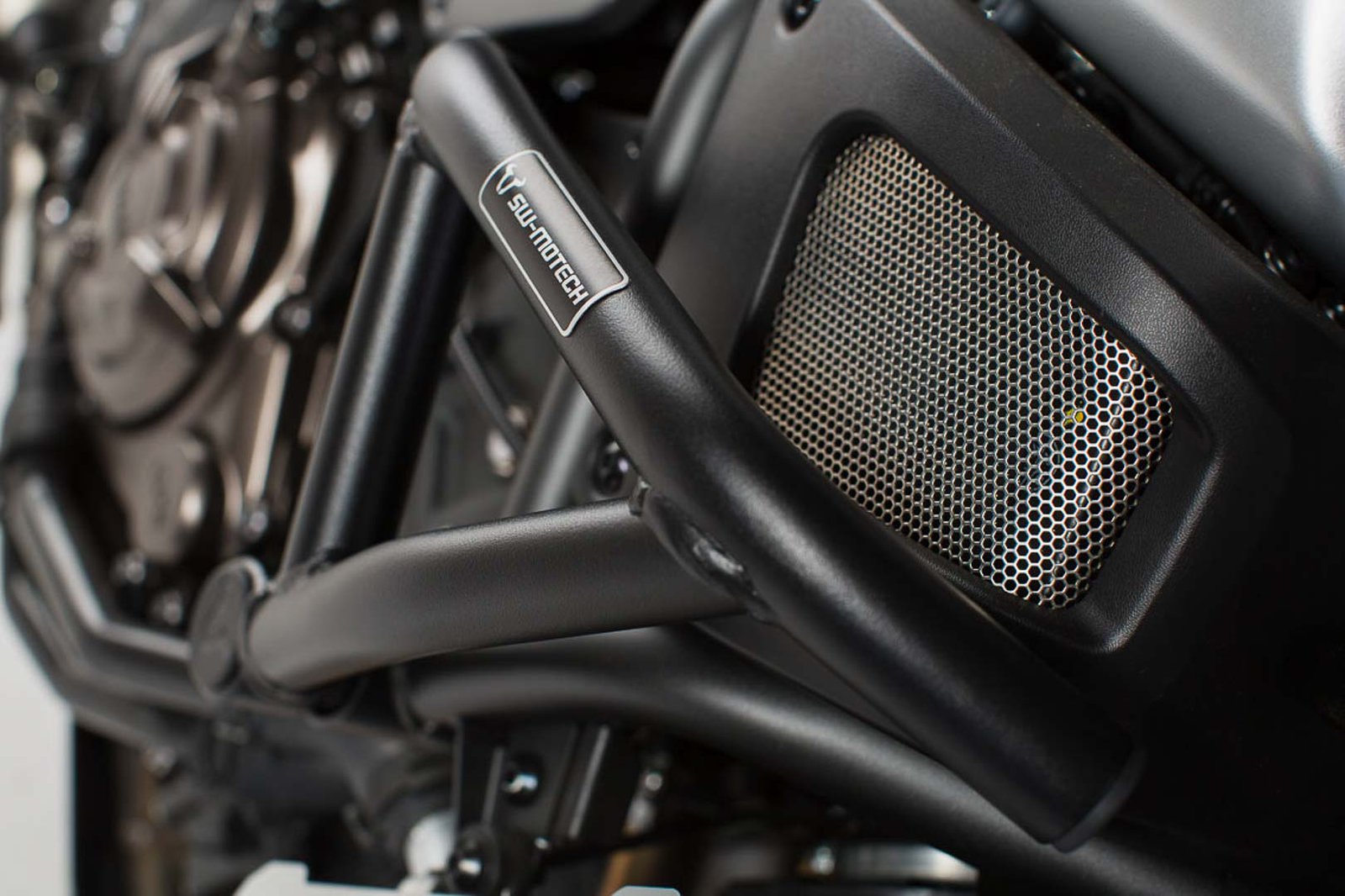 As safe as possible in case of an accident or when toppling over: This sturdy crash bar sports a pipe diameter of 27 millimeters and offers reliable protection for fuel tank, fairing and other motorcycle components. The metal frame has been tailored to the bike model and is mounted to existing anchor points on the motorcycle frame. This supplies a high degree of stability, in addition the crash bar can be installed without drilling or welding. A black powder coating protects the steel frame from scratches and corrosion.