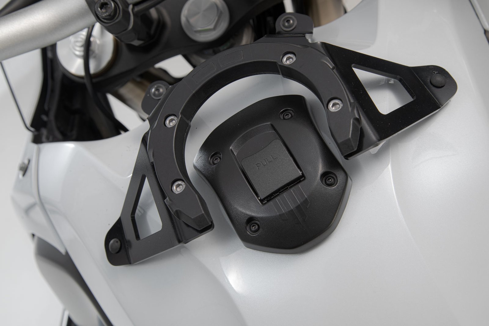 The mechanical locking mechanism secures the tank bag, and the magnets bring both parts of the ring together. The robust fibreglass reinforced plastic with its high-precision locking geometry is responsible for ensuring that the tank bag remains firmly in place in all situations.