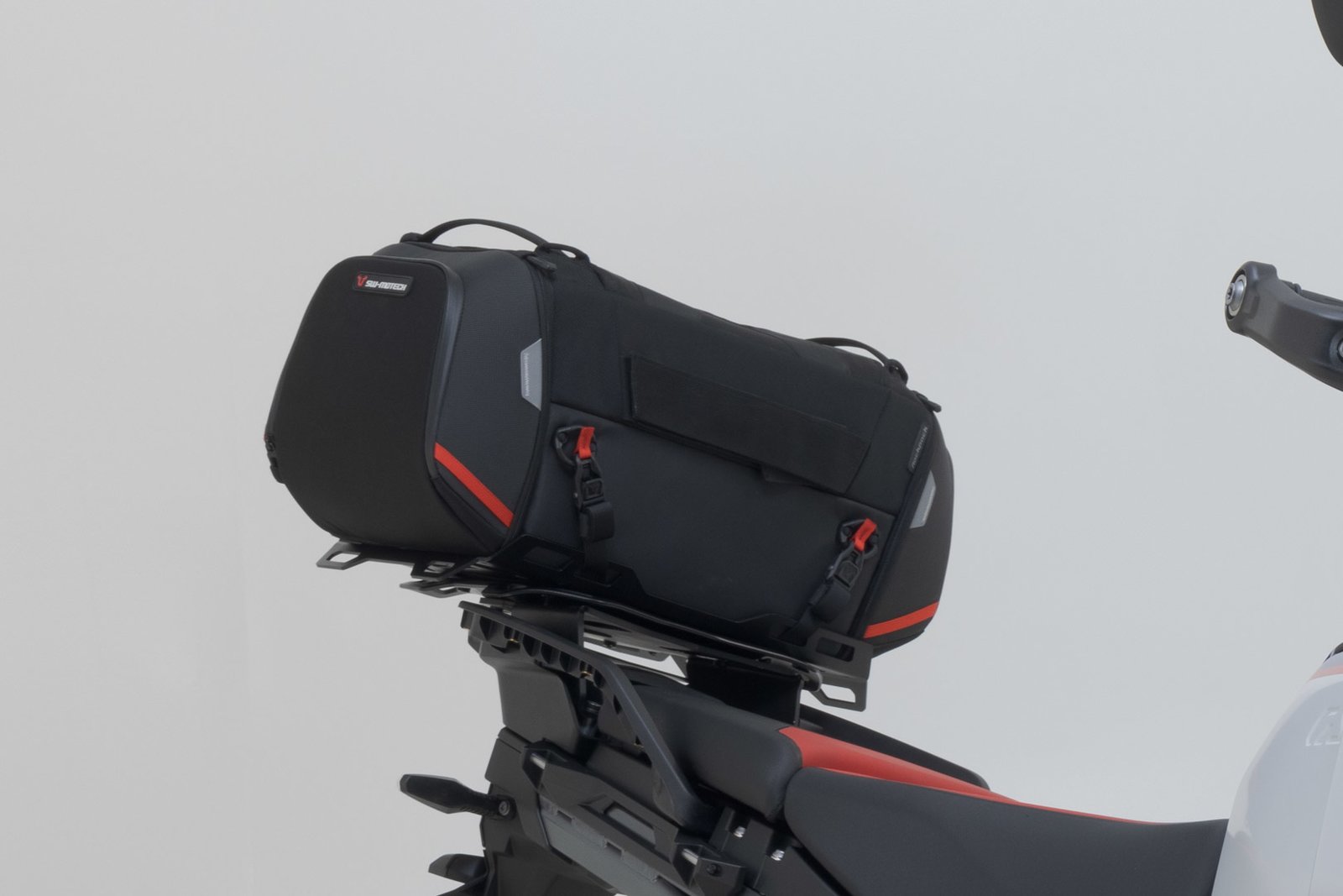 Tail bag ze série PRO je vyroben společností SW-MOTECH z nezničitelného 1680 D Ballistic Nylonu a nosič z robustní hliníkové slitiny. Nosič je připevněn k pružným montážním bodům na motocyklu specifickým pro jízdní kolo.