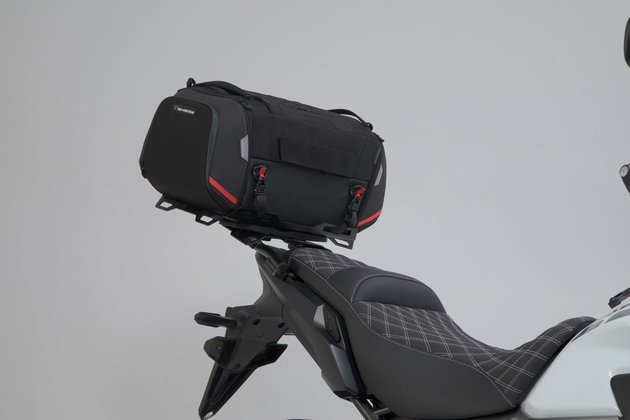 The tail bag from the PRO series is made by SW-MOTECH from indestructible 1680 D Ballistic Nylon and the rack from robust aluminum alloy. The rack is attached to resilient bike-specific mounting points on the motorcycle.