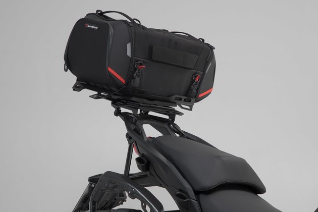 Tail bag ze série PRO je vyroben společností SW-MOTECH z nezničitelného 1680 D Ballistic Nylonu a nosič z robustní hliníkové slitiny. Nosič je připevněn k pružným montážním bodům na motocyklu specifickým pro jízdní kolo.