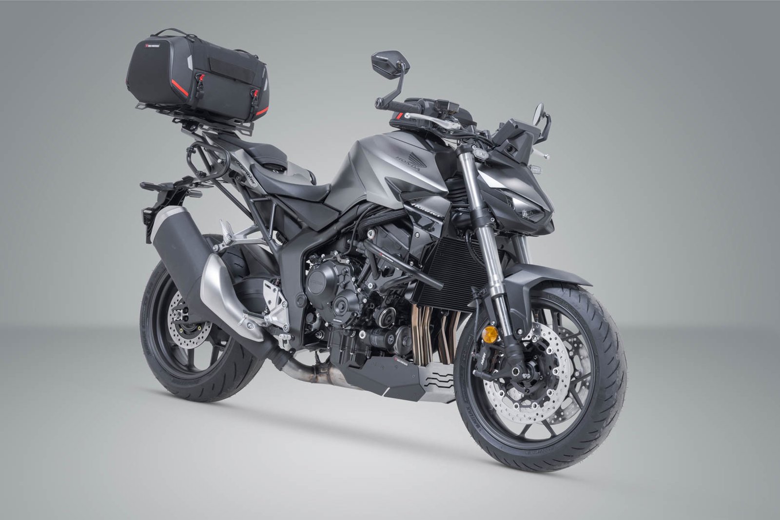 We have put together this tail bag and luggage rack combination to fit the Honda CB1000 Hornet. The bike-specific STREET-RACK with extension offers an ideal large contact surface for the PRO Rackpack tail bag.