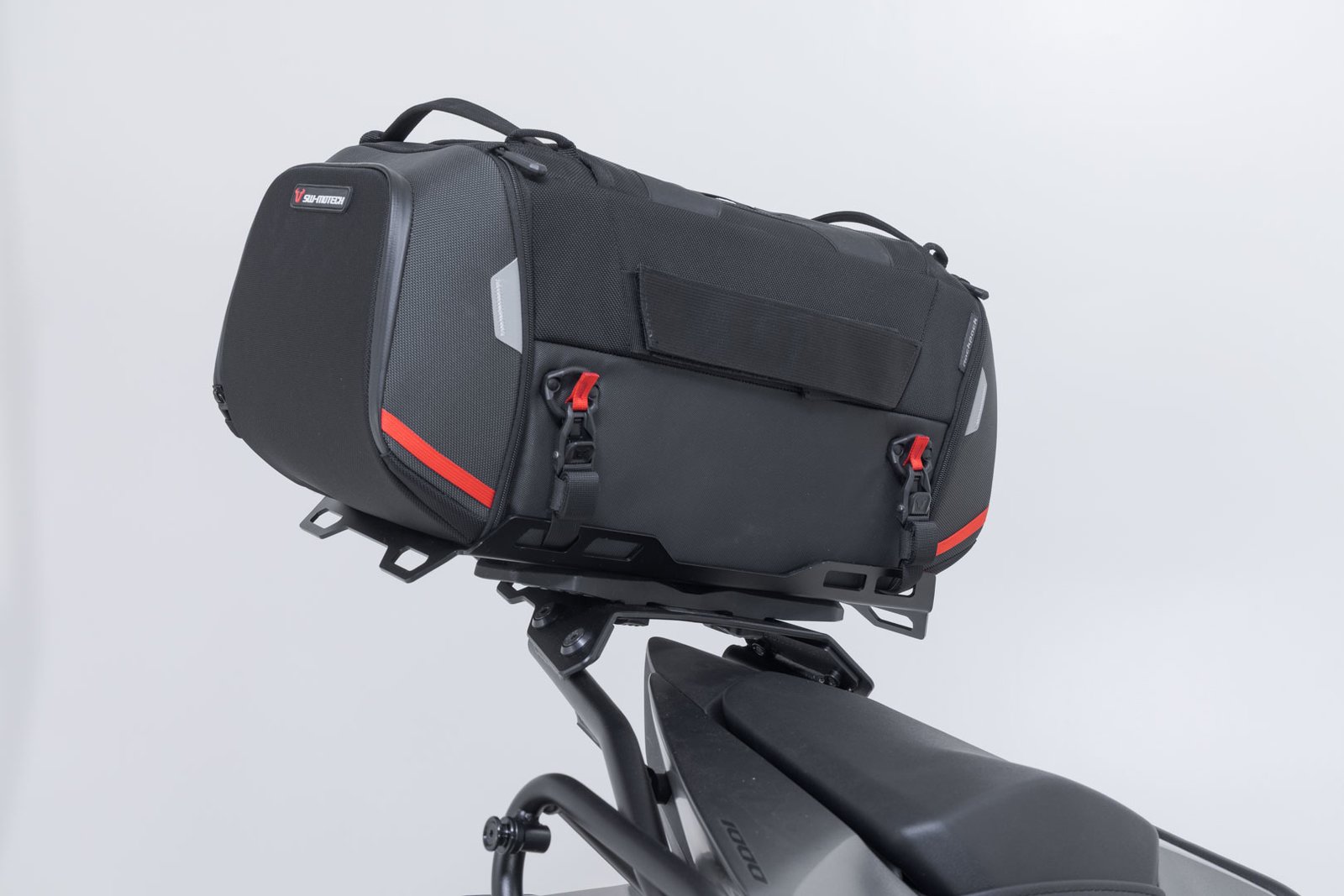 The tail bag from the PRO series is made by SW-MOTECH from indestructible 1680 D Ballistic Nylon and the rack from robust aluminum alloy. The rack is attached to resilient bike-specific mounting points on the motorcycle.