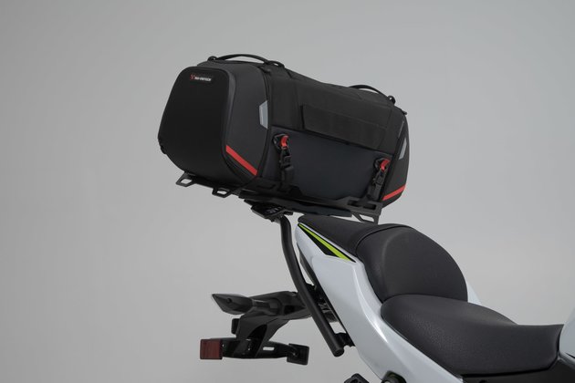 Tail bag ze série PRO je vyroben společností SW-MOTECH z nezničitelného 1680 D Ballistic Nylonu a nosič z robustní hliníkové slitiny. Nosič je připevněn k pružným montážním bodům na motocyklu specifickým pro jízdní kolo.