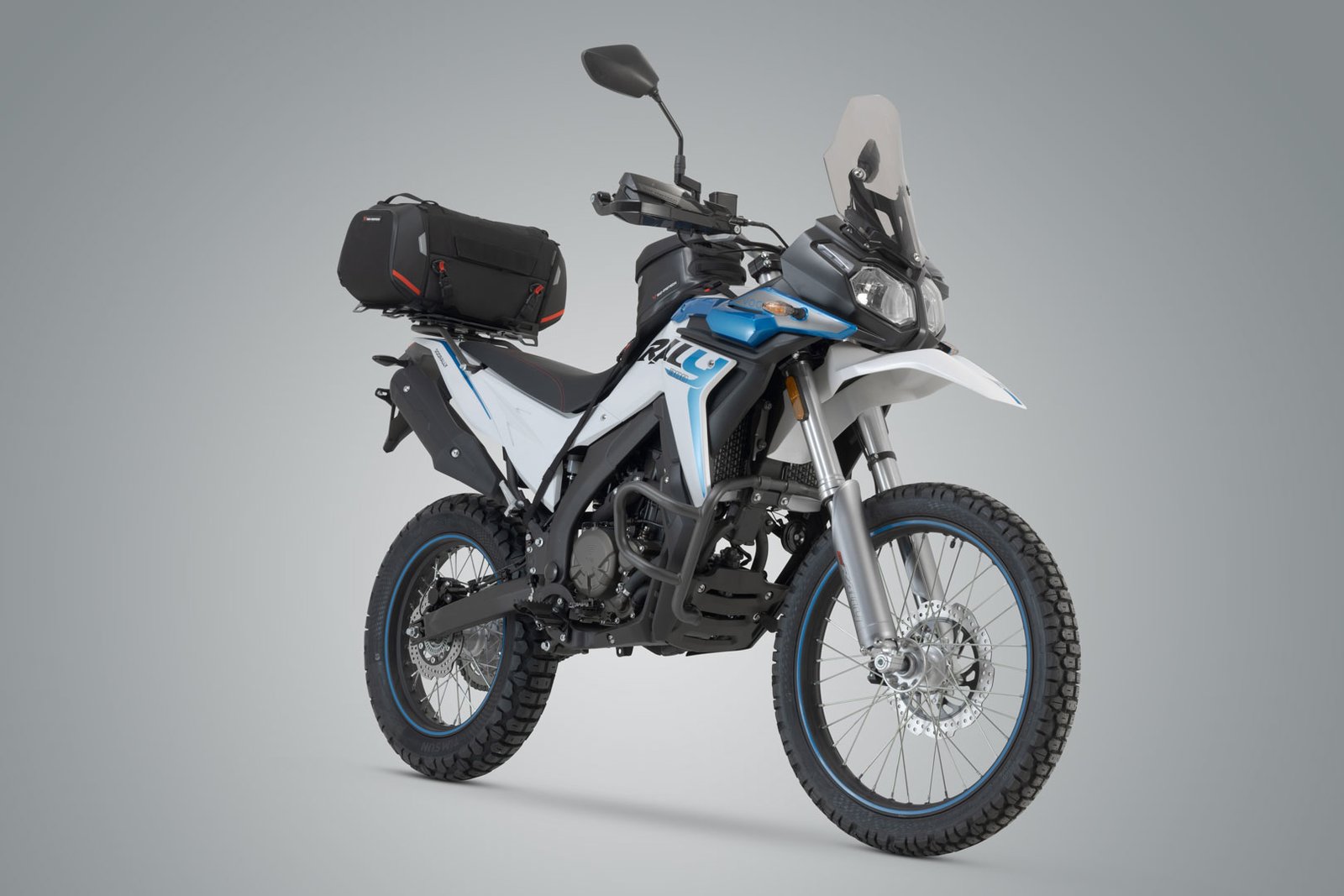 We have put together this combination of tail bag and rack to fit the Voge. The bike-specific ADVENTURE-RACK with extension offers an ideal large contact surface for the PRO Rackpack tail bag.