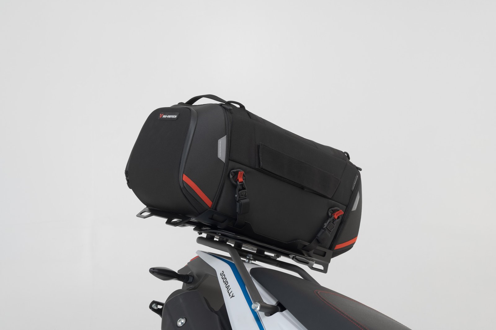 The tail bag from the PRO series is made by SW-MOTECH from indestructible 1680 D Ballistic Nylon and the rack from robust aluminum alloy. The rack is attached to resilient bike-specific mounting points on the motorcycle.