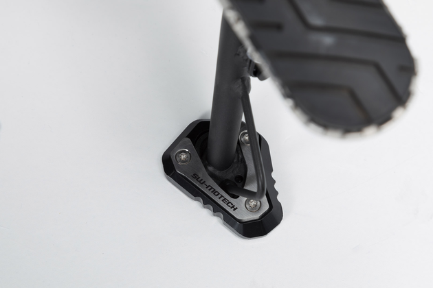 Tato strana stojí rozšíření nabízí velké kontaktní plochy ke zlepšení motocykl s parkováním stopu na drsné povrchy a měkkou půdu. Rozšíření probíhá CNC frézované z vysokopevnostní hliníkové slitiny, kombinace anodizovaného hliníku a nerezové oceli poskytuje vysokou odolnost za všech klimatických podmínek. Drážkované horní římsu pomáhá řidiči vychylovat boční stojan snadno i při nošení těžké boty.
