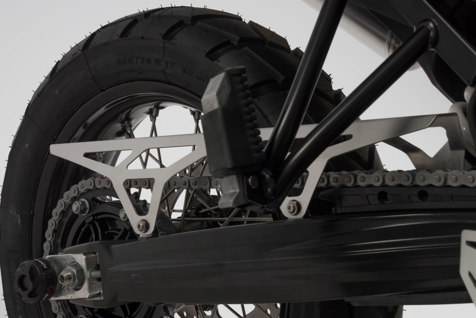 • Solid aluminum construction as an alternative to plastic chain guard