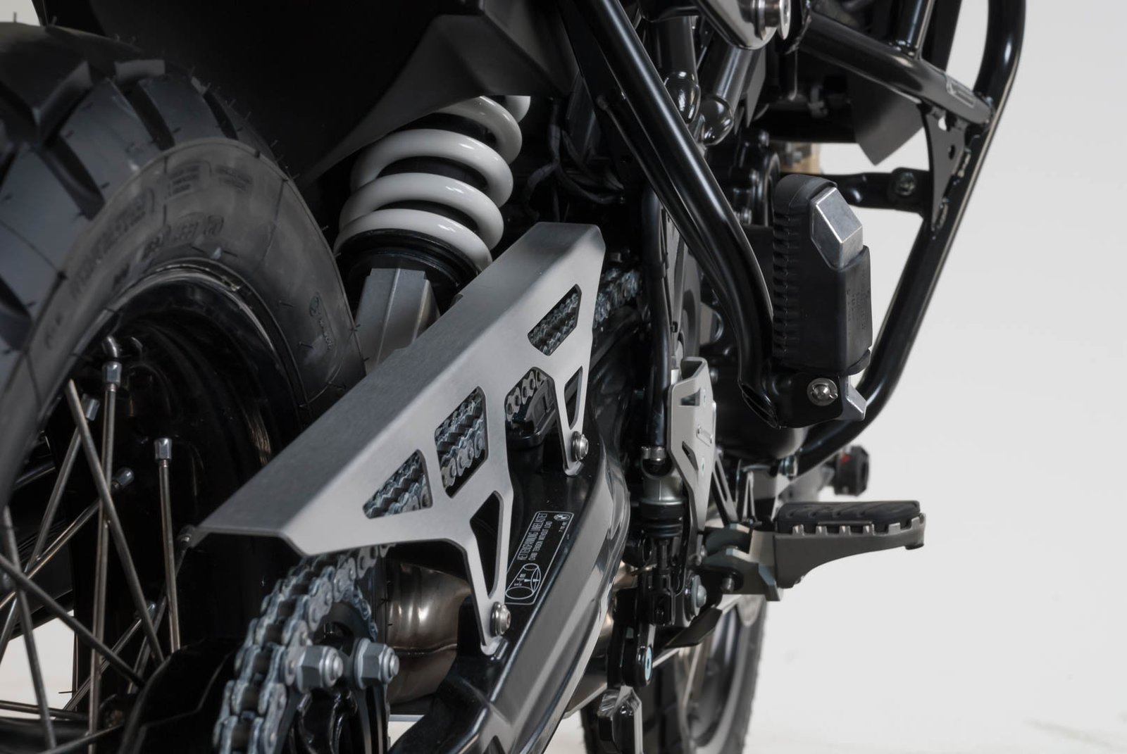 The protection set contains the following components suitable for BMW F 700 GS: Brake pump protection, Header pipe guard and Chain guard.