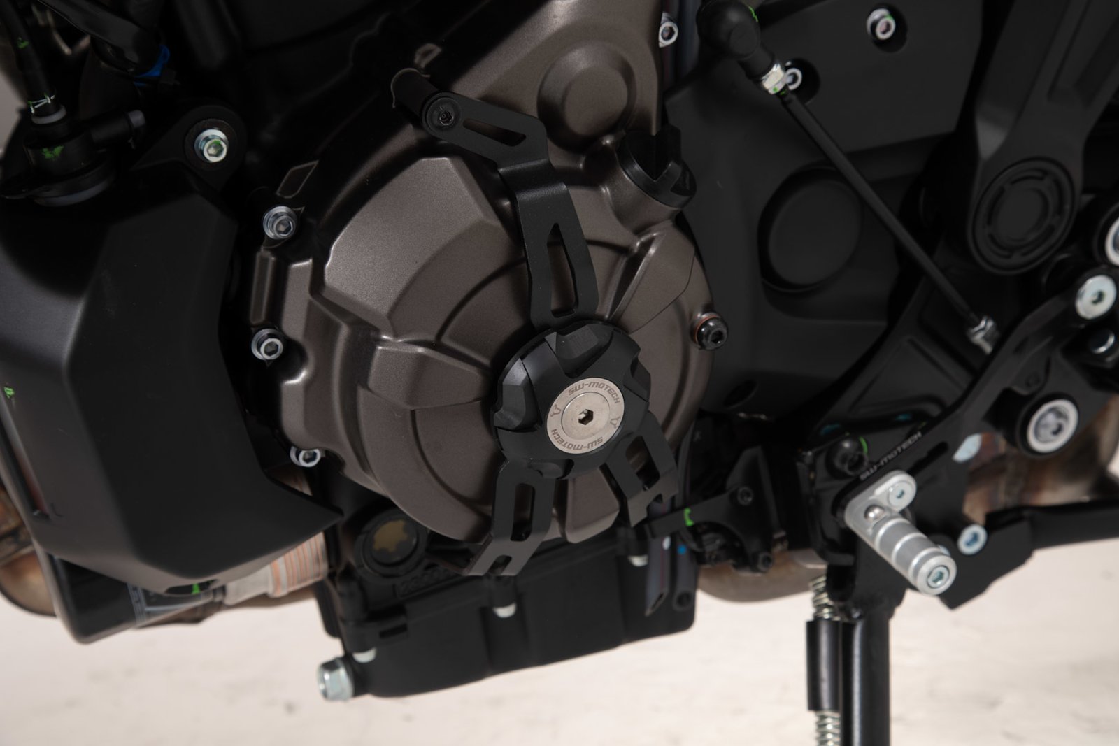 The protection set contains the following components suitable for the Yamaha MT-07: Water pump protection and Alternator cover guard .