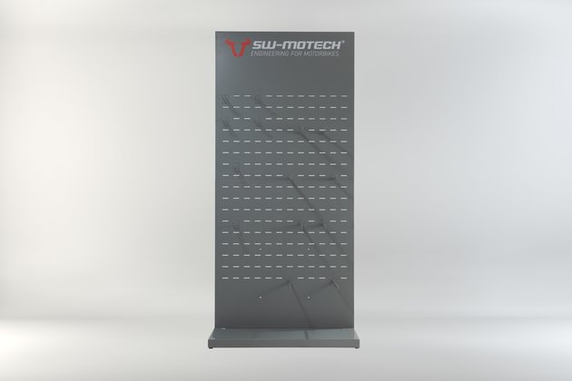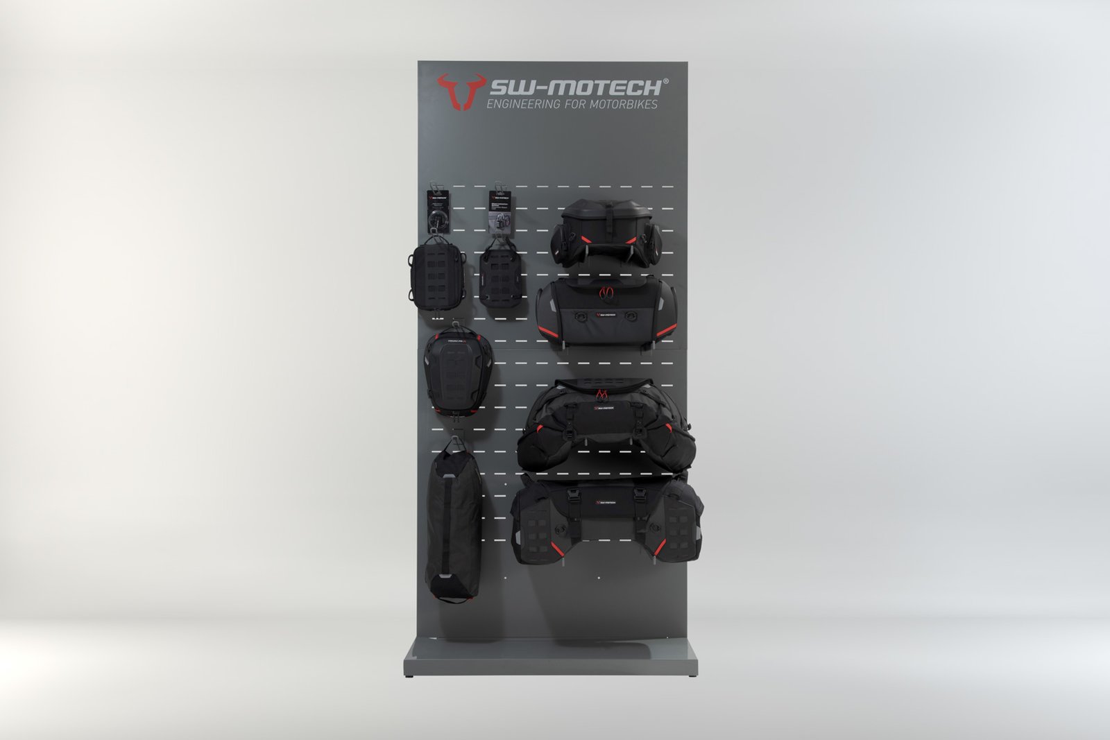 Sales display - wall with equipment Topic: PRO rear bags and accessories.