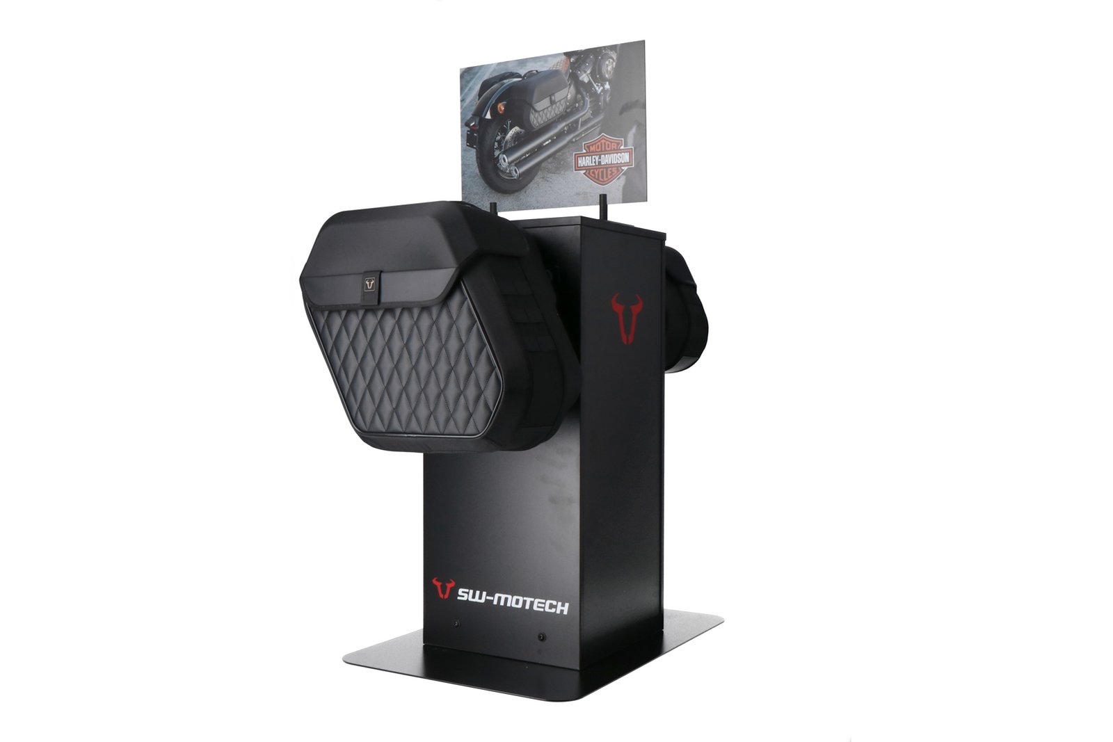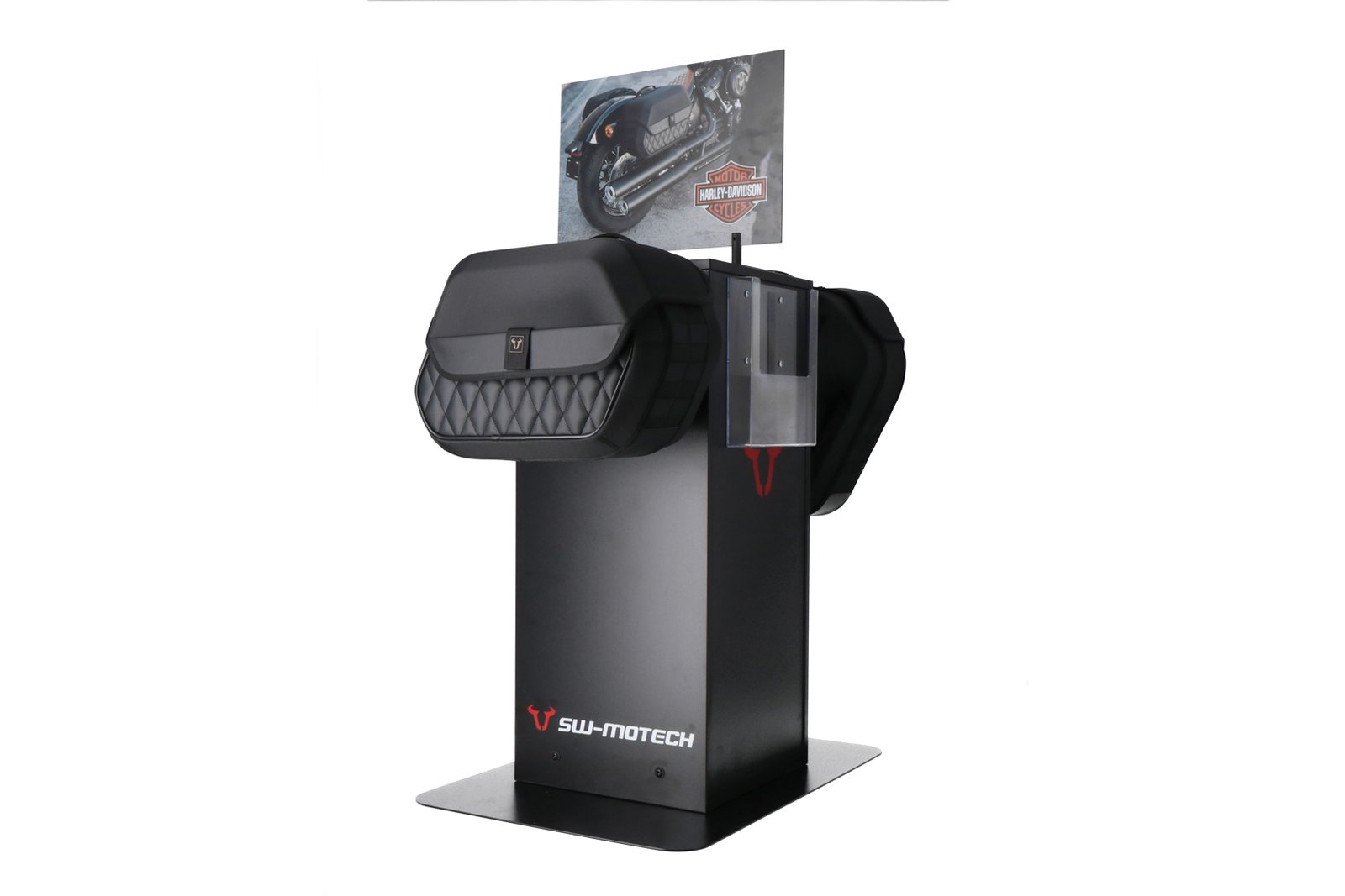 Sales display with mounting Theme: Harley LH side bag and accessories.