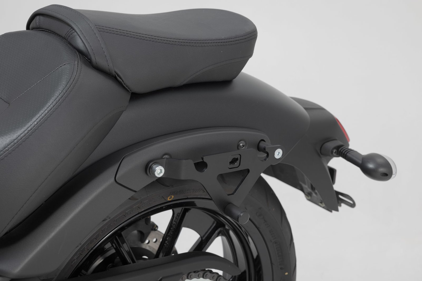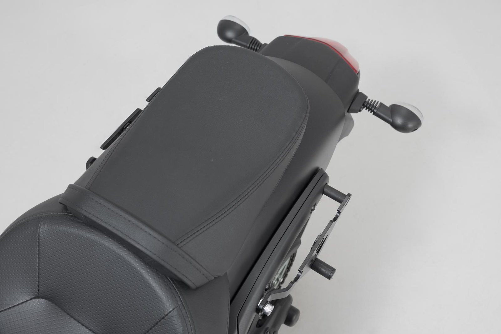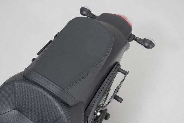 The bike-specific bag carrier can be easily and quickly mounted on to original attachment points on the fender strut. The quick lock system allows LH Legend Gear side bags to be attached and removed in just a few easy hand movements, without the driver foregoing reliable bag fastening.
