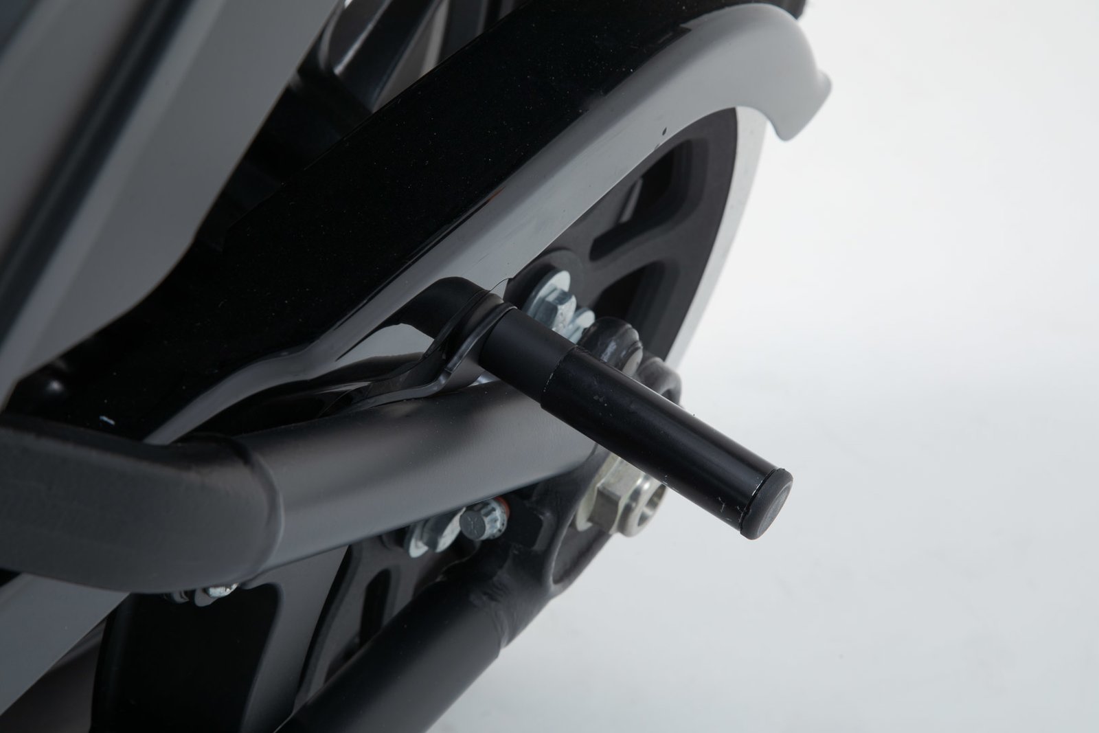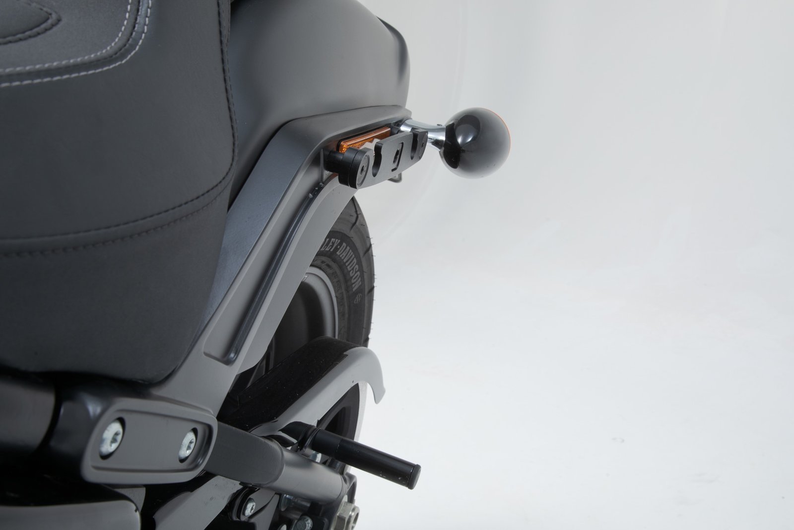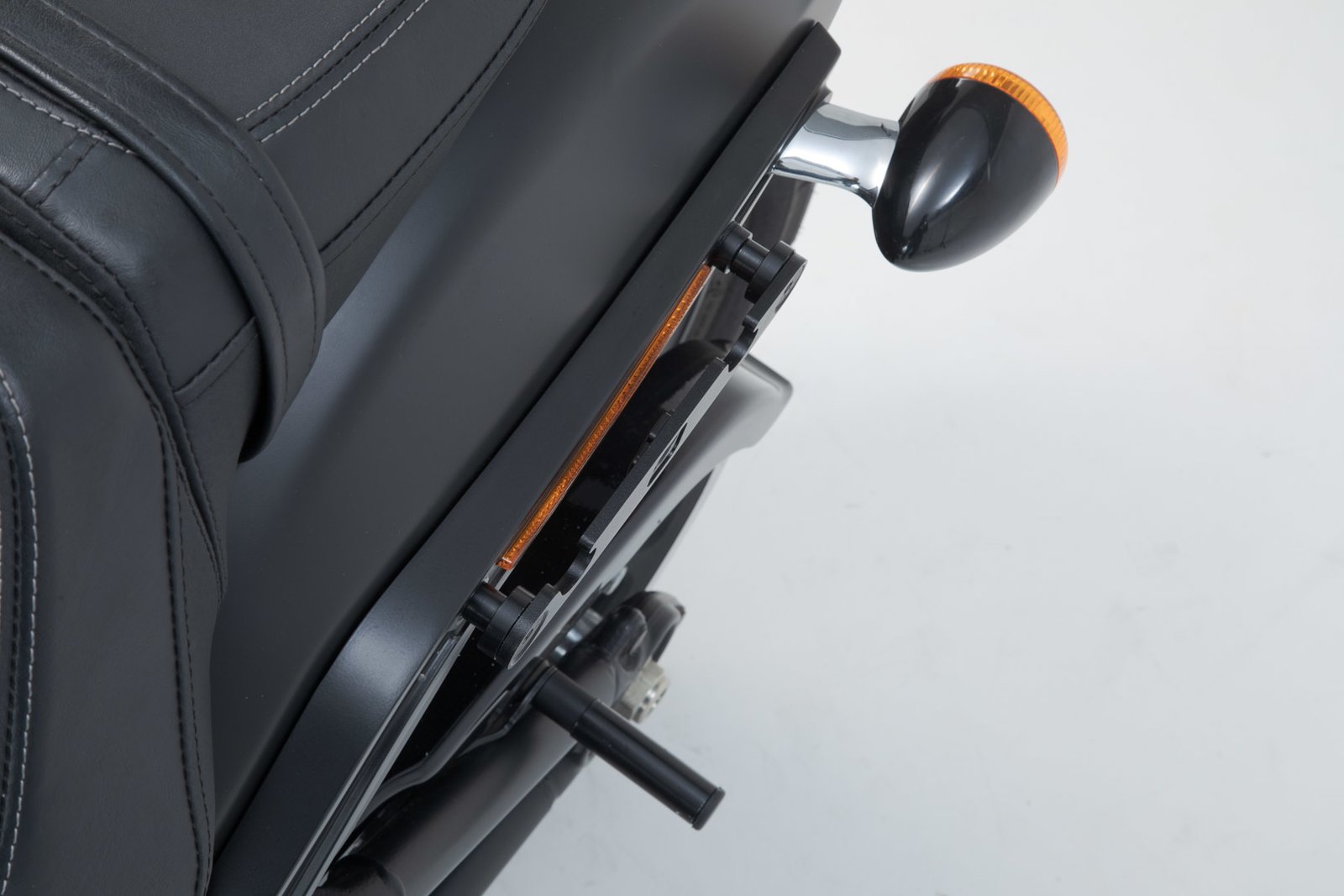 The bike-specific bag carrier can be easily and quickly mounted on to original attachment points on the fender strut. The quick lock system allows LH Legend Gear side bags to be attached and removed in just a few easy hand movements, without the driver foregoing reliable bag fastening. It can also be used in combination with original Harley-Davidson accessories such as the sissy bar or rack.