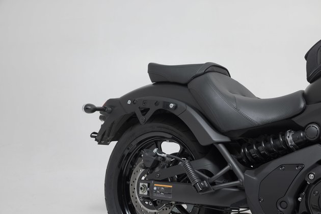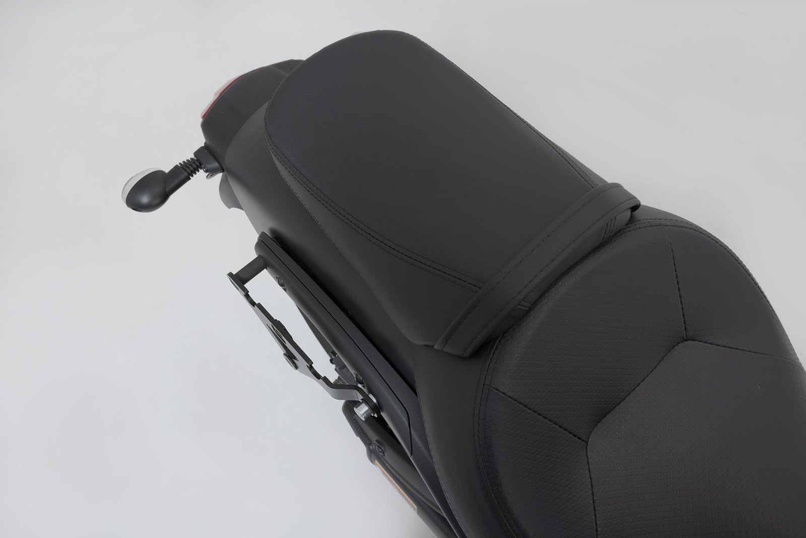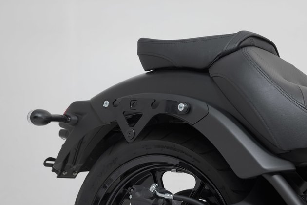 The bike-specific bag carrier can be easily and quickly mounted on to original attachment points on the fender strut. The quick lock system allows LH Legend Gear side bags to be attached and removed in just a few easy hand movements, without the driver foregoing reliable bag fastening.