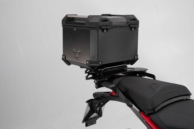 The compact STREET-RACK was developed specially for sporty motorcycles, naked bikes and smaller street bikes. The URBAN ABS top case or an adapter plate can be fixed to the rack in one step without any tools. The adapter plate provides a sturdy base for top cases from SW-MOTECH, Givi, Krauser and Shad or a Sysbag 15/30 with adapter plate. Together with the extension (sold separately) with extra large contact surface, the STREET-RACK is also suitable for strapped-on luggage. With our STREET-RACK, your bike is ready for the next long tour in a few simple steps.