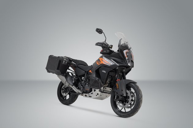 Společnost SW-MOTECH vytvořila tento hliníkový systém pouzder vhodný pro model KTM 1290 Super Adventure s použitím extrémně odolných bočních nosičů PRO specifických pro jízdní kola.