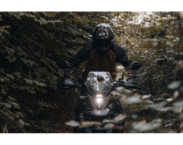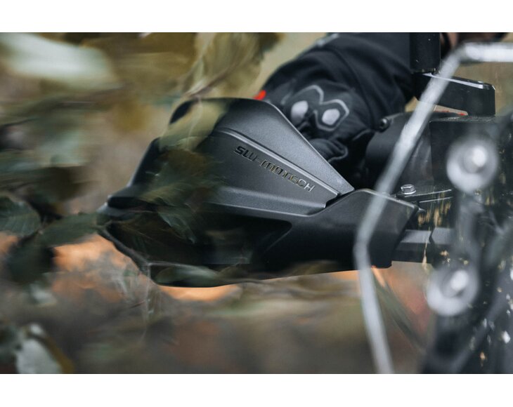 - Adventure handguards made of impact-resistant plastic protect against weather, falling rocks, and branches
