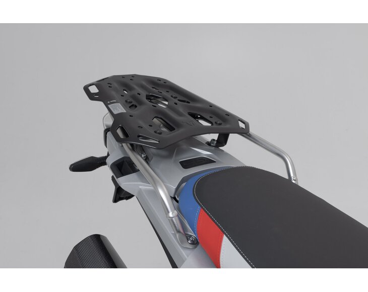 SW-MOTECH produces this versatile ADVENTURE-RACK specifically for the BMW R 1250 GS Adventure. The ADVENTURE-RACK is attached to the original, short BMW stainless steel luggage rack. As such, pillion handholds may still be used.