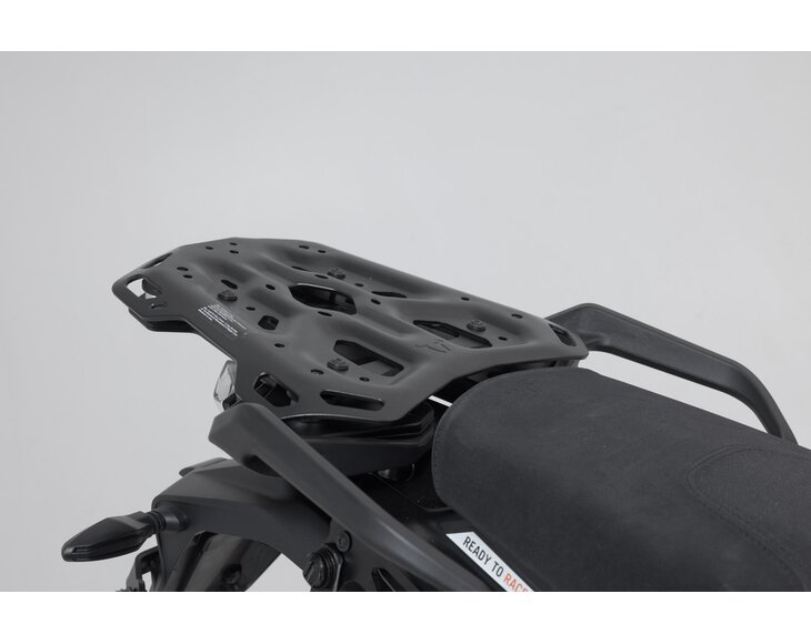 Ready for big adventure: Our ADVENTURE-RACK proves itself with its extreme durability and function-oriented shape. More than 15 years of experience producing racks, combined with feedback from customers and test riders, went into the development of this aluminum rack Material thickness, weight and geometry have been optimized for demanding tours and off-road use. The bike-specific attachments guarantee the best fit and easy mounting on original attachment points. Specifically developed for long-distance enduros, large street and sport touring machines, the ADVENTURE-RACK offers a large contact surface. Numerous, large lashing eyes provide secure hold for tail bags. The functional bores require adapter kits for attaching top cases by SW-MOTECH, Givi, Krauser and Shad or SysBags.