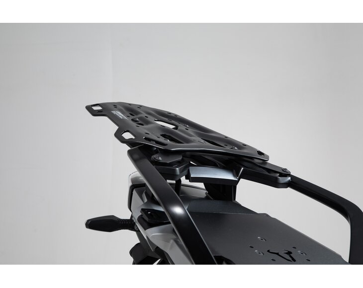 Bike-specific attachment elements guarantee best fit and a simple attachment to the original attachment points. Designed specifically for touring bikes, large street and sport touring bikes, the ADVENTURE-RACK has a large storage surface. Numerous large lashing eyes give tail bags a secure hold. The functional bores accept adapter kits to attach top cases from SW-MOTECH, Givi, Krauser and Shad or SysBags.