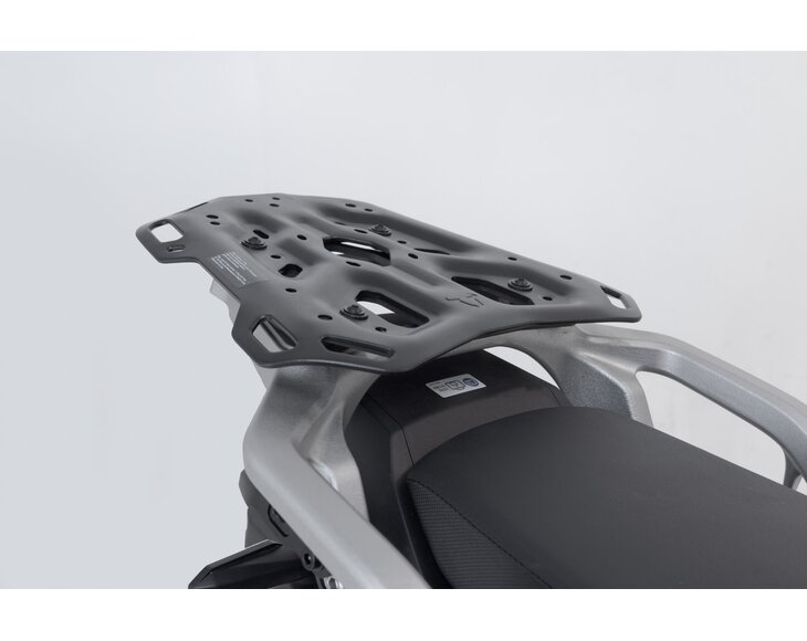 Ready for big adventure: Our ADVENTURE-RACK proves itself with its extreme durability and function-oriented shape. More than 15 years of experience producing racks, combined with feedback from customers and test riders, went into the development of this aluminum rack Material thickness, weight and geometry have been optimized for demanding tours and off-road use. The bike-specific attachments guarantee the best fit and easy mounting on original attachment points. Specifically developed for long-distance enduros, large street and sport touring machines, the ADVENTURE-RACK offers a large contact surface. Numerous, large lashing eyes provide secure hold for tail bags. The functional bores require adapter kits for attaching top cases by SW-MOTECH, Givi, Krauser and Shad or SysBags.