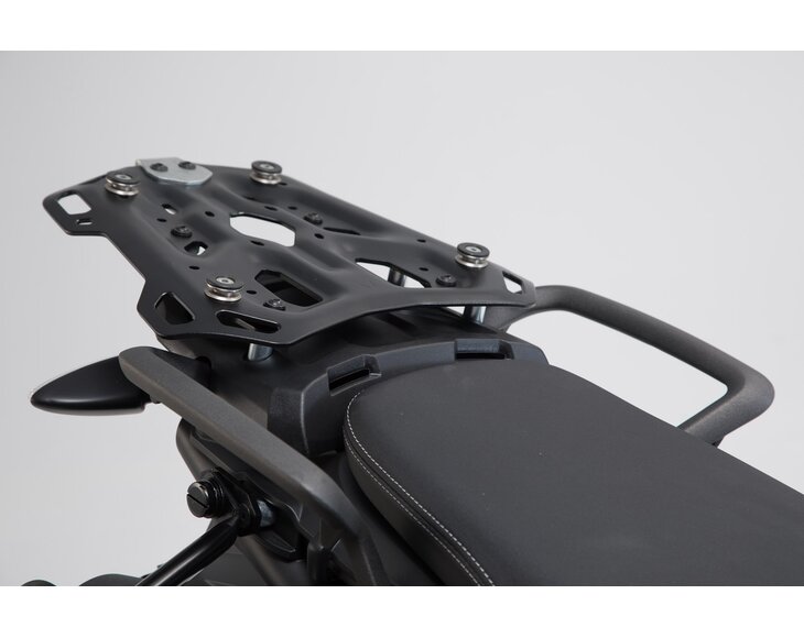 Bike-specific attachment elements guarantee best fit and a simple attachment to the original attachment points. Designed specifically for touring bikes, large street and sport touring bikes, the ADVENTURE-RACK has a large storage surface. Numerous large lashing eyes give tail bags a secure hold. The functional bores accept adapter kits to attach top cases from SW-MOTECH, Givi, Krauser and Shad or SysBags.