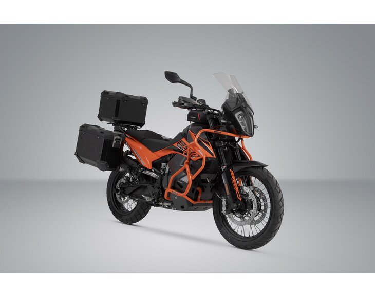 Sada zavazadel Adventure obsahuje boční nosiče PRO a nosič ADVENTURE RACK, které lze kombinovat s modely KTM 790 Adventure a KTM 890 Adventure. Boční nosič a nosič jsou připevněny k upevňovacím bodům specifickým pro motocykl a nabízejí robustní oporu černým hliníkovým kufrům TRAX ADV.