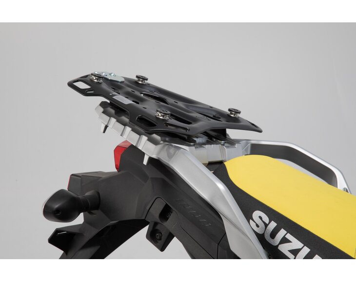 Dobrodružná sada Luggage obsahuje boční nosiče Suzuki DL 650 V-Strom PRO a odpovídající nosič ADVENTURE-RACK. Boční nosič a nosič jsou připevněny k upevňovacím bodům specifickým pro kolo a nabízejí pevnou oporu pro černé hliníkové kufry TRAX ADV.