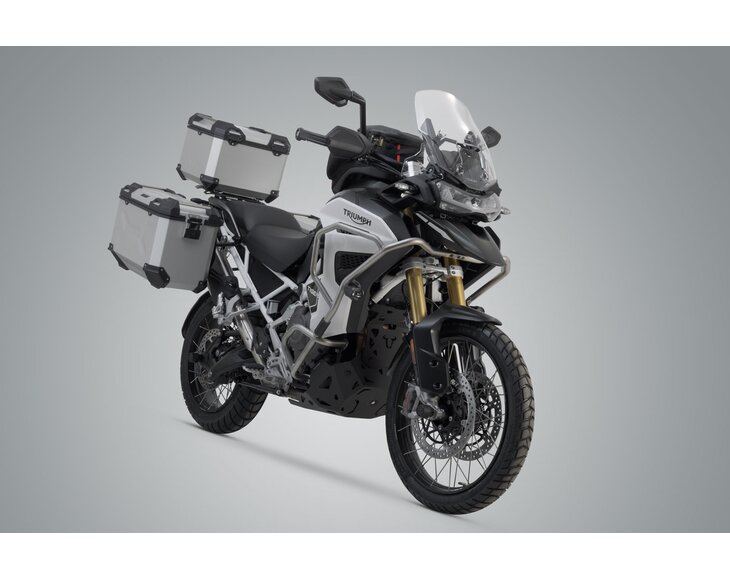SW-MOTECH vyrobil tento systém hliníkových pouzder vhodný pro Triumph Tiger 1200 Rally / GT Explorer pomocí extrémně odolných bočních nosičů PRO specifických pro kolo.