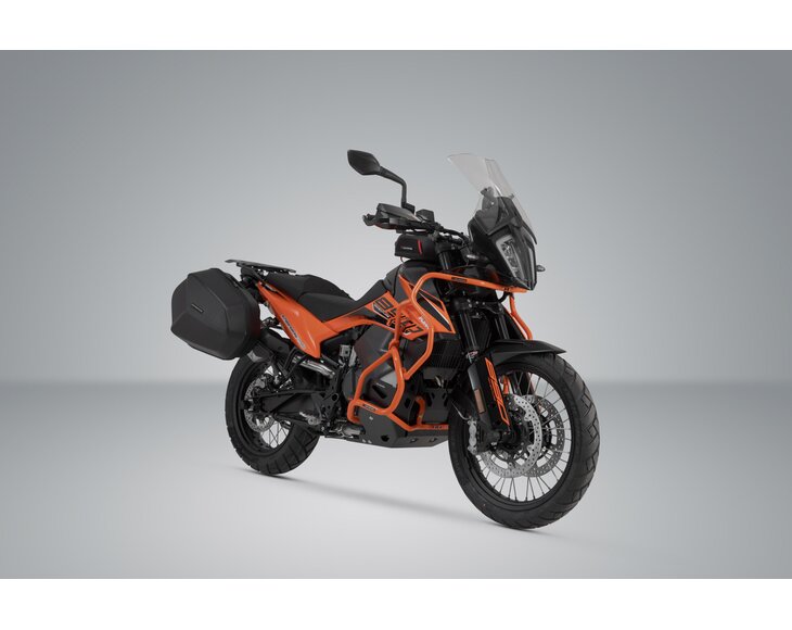 The AERO ABS side case system consists of PRO side carriers for the KTM 790 Adventure and the KTM 890 Adventure and two plastic cases.