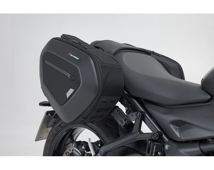 The high version of the PRO BLAZE saddlebags is specially designed for motorcycles with a higher positioned exhaust. Due to the elevated position, the bags are not affected by the heat radiation of the exhaust. SW-MOTECH has manufactured this bag set with matching support arms for the Triumph Trident 660.