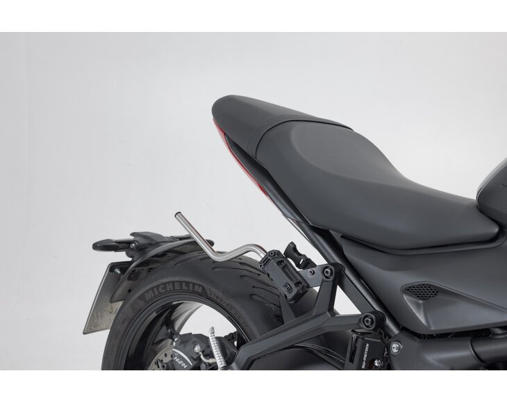 Developed specifically for sporty motorcycles, the saddlebags have a minimal effect on driving characteristics. When travelling without luggage, the removable support arms can be detached with a simple step, leaving only inconspicuous holders behind on the bike.